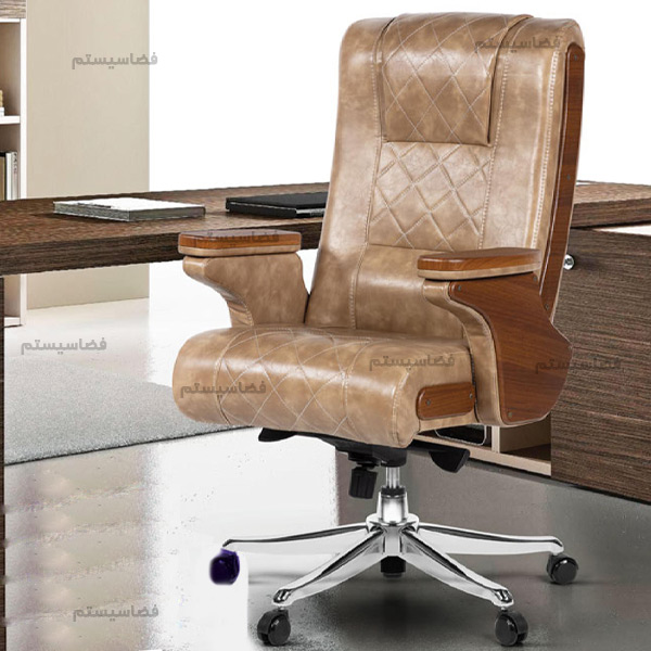 صندلی مدیریت چرم براق در قسمت پشتی تشکیل شده از دوخت های لوزی لوزی میباشد که این دوخت فقط در قسمت وسط قابل مشاهده میباشد همچنین در پشتی دو بالشتک وجود دارد که یکی برای پشت سری و دیگری برای گودی کمر زده میشود. در قسمت کفی هم فوم سوبل کار شده تا بزرگ بودن صندلی به چشم بیاید همچنین در قبال آن راحتی بیشتری را به شما تقدیم میکند. در قسمت دسته ها و کناره های کار هم علاوه بر روکش چرم، چوب وکیوم شده بر روی دسته ها و کناره های صندلی بکار برده میشود.